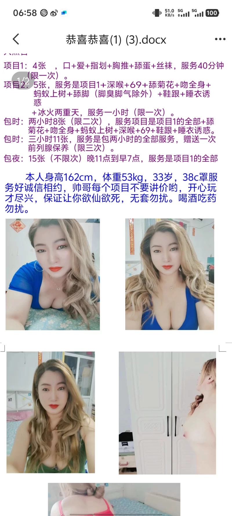 一次体验终身难忘,本狼没有什么文采,但是北京体验多年,经验告诉大家绝对能让你流连忘返的妹子,图2.3是叫楠楠的活不满意不要钱,大家自己感觉去吧,这两个我是在一家体验的,能不能遇到也看大家的缘分了。